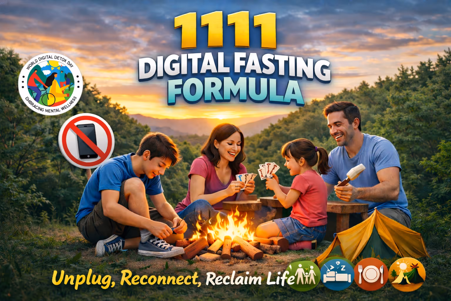 The 1111 Digital Fasting Formula is the central behavioural framework of World Digital Detox Day. It provides clear, practical guidelines to help schools, families, workplaces, and communities reduce digital dependency and build healthier, technology-balanced lifestyles.